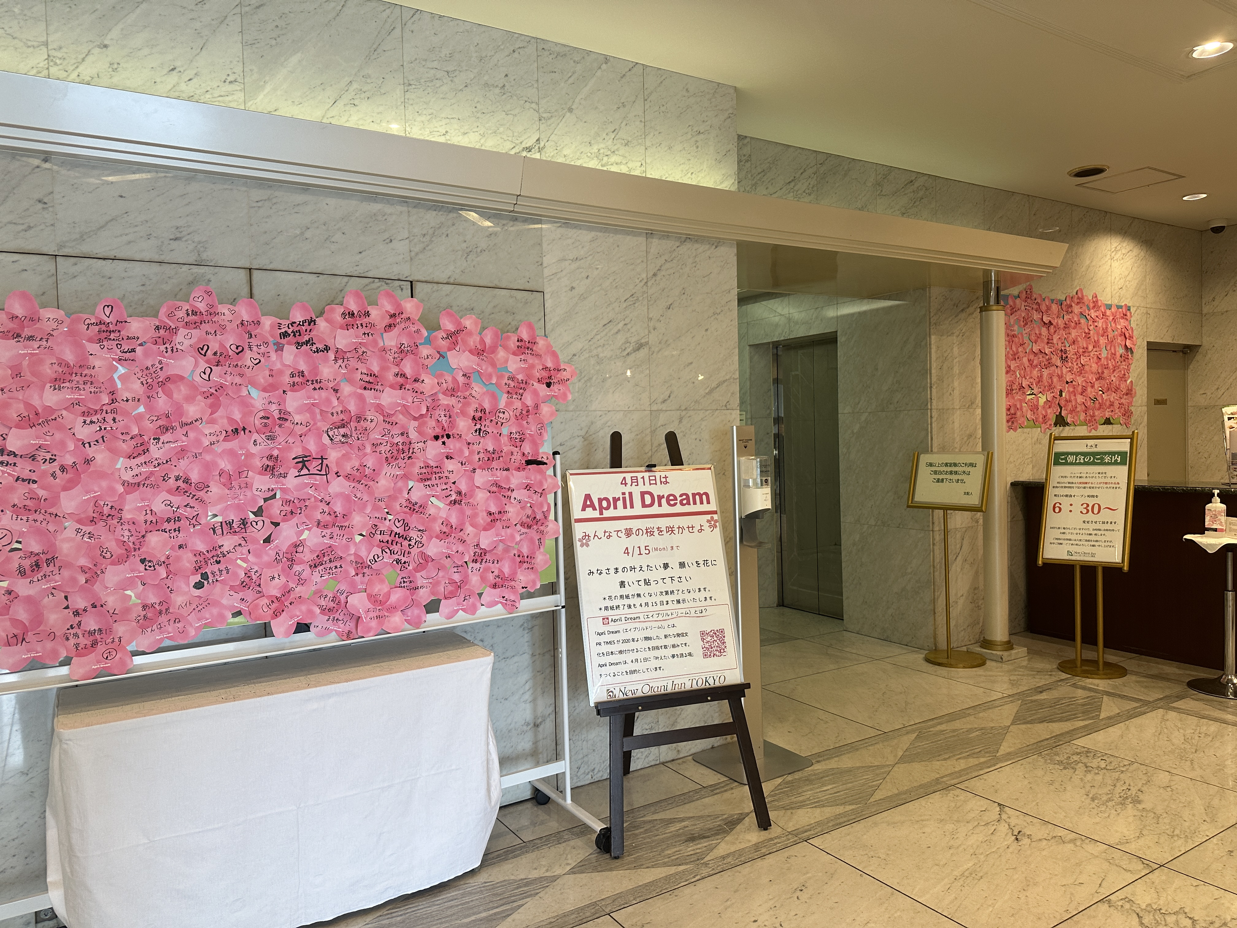 ホテルのロビィには「夢結び桜ツリー」を特設展示。