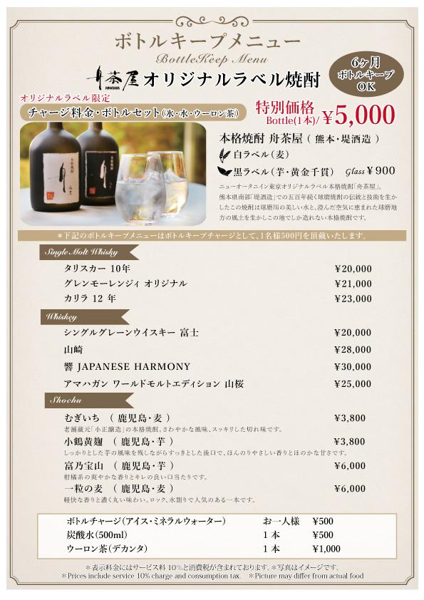 その他にもボトルキープメニューご用意ございます。